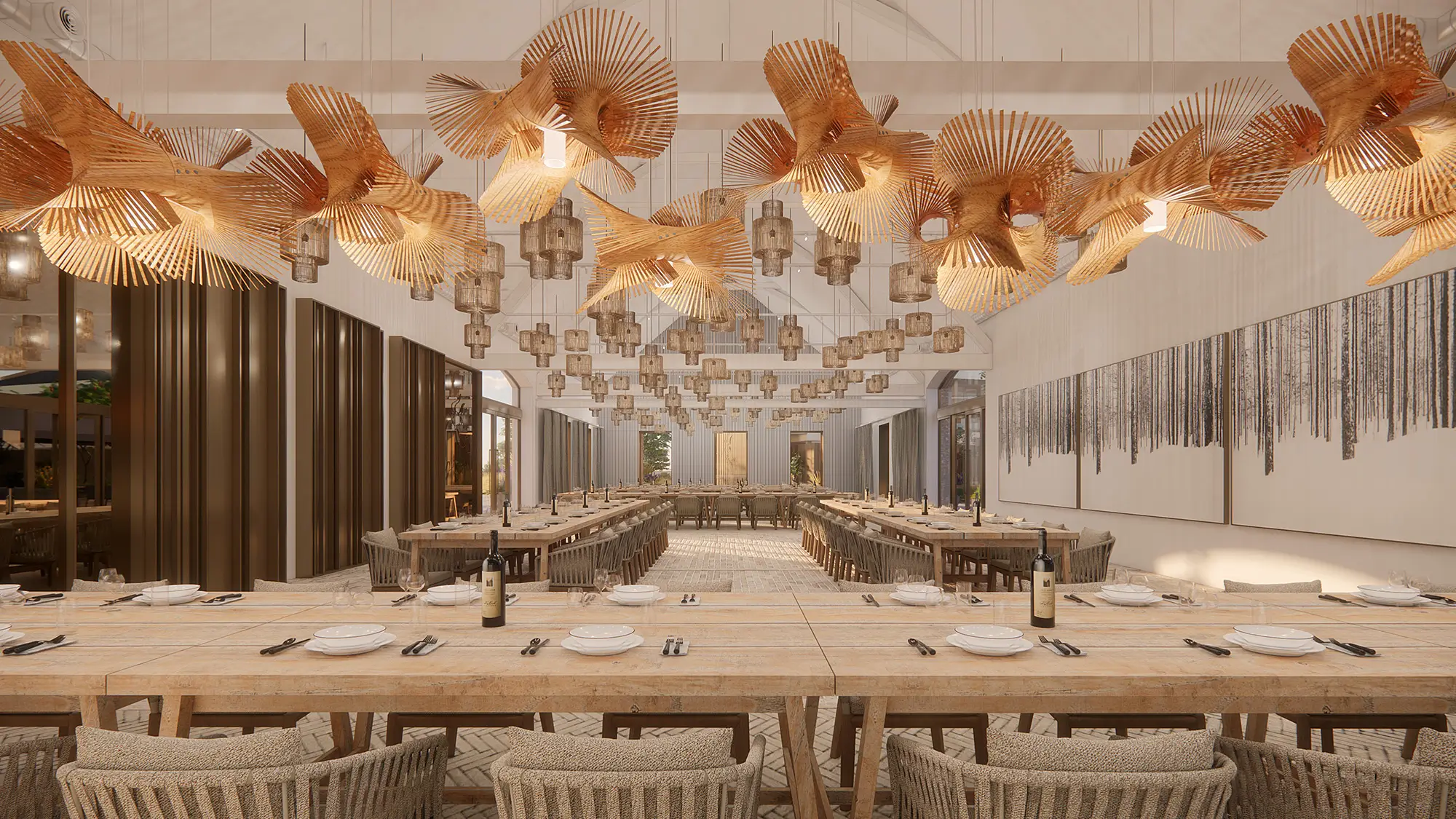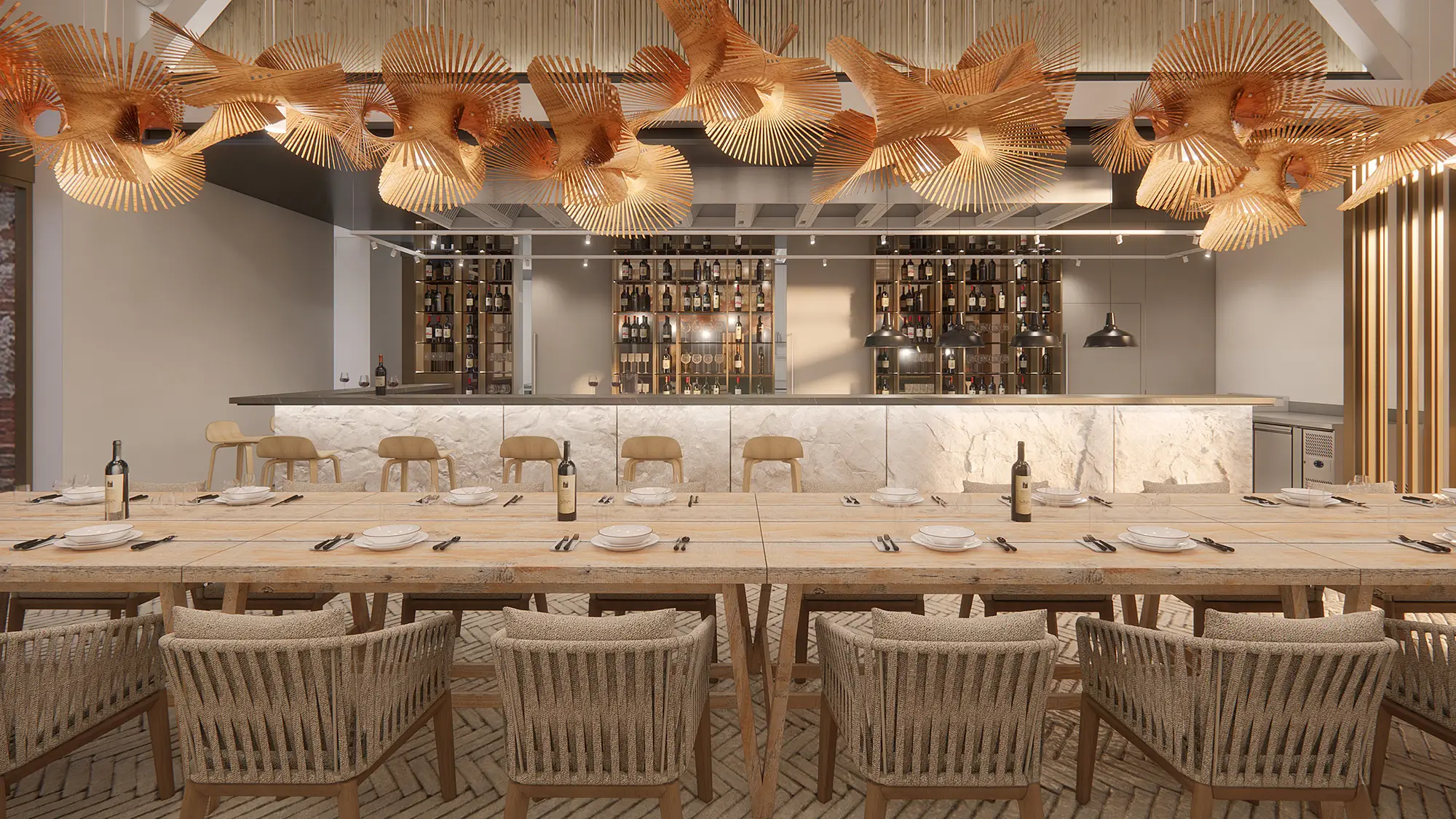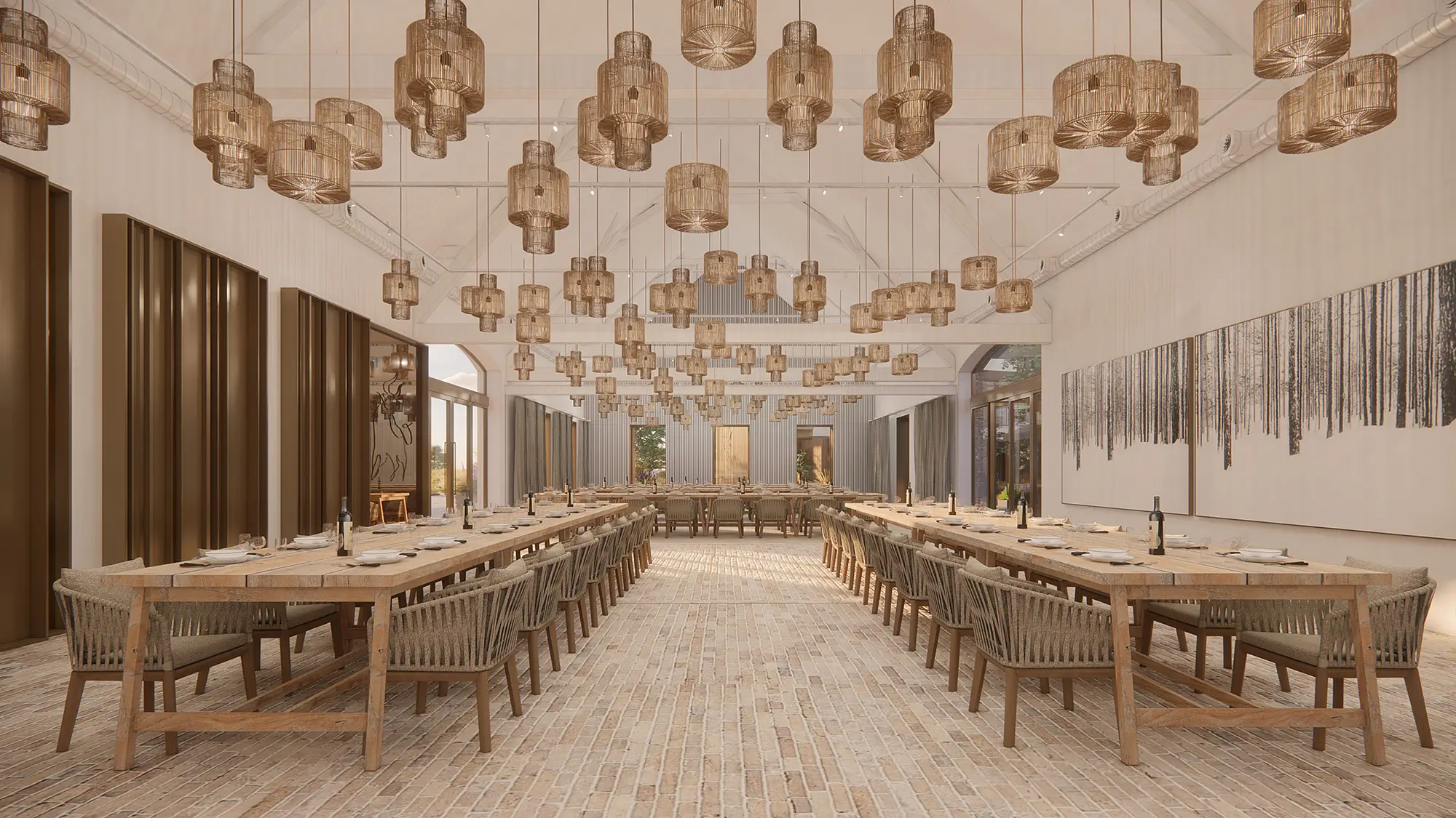 Původní klenby a trámy v kombinaci s designovým osvětlením