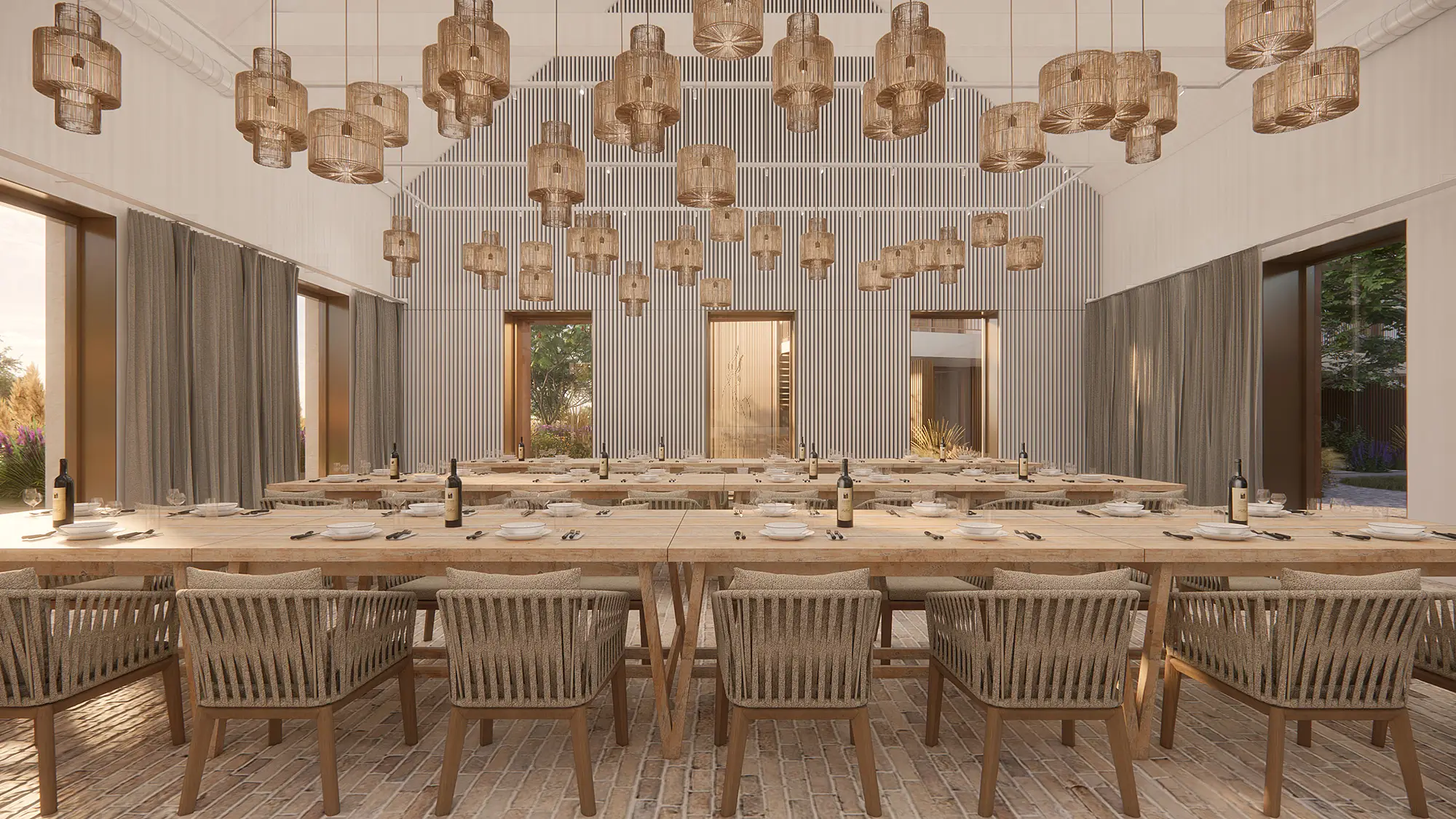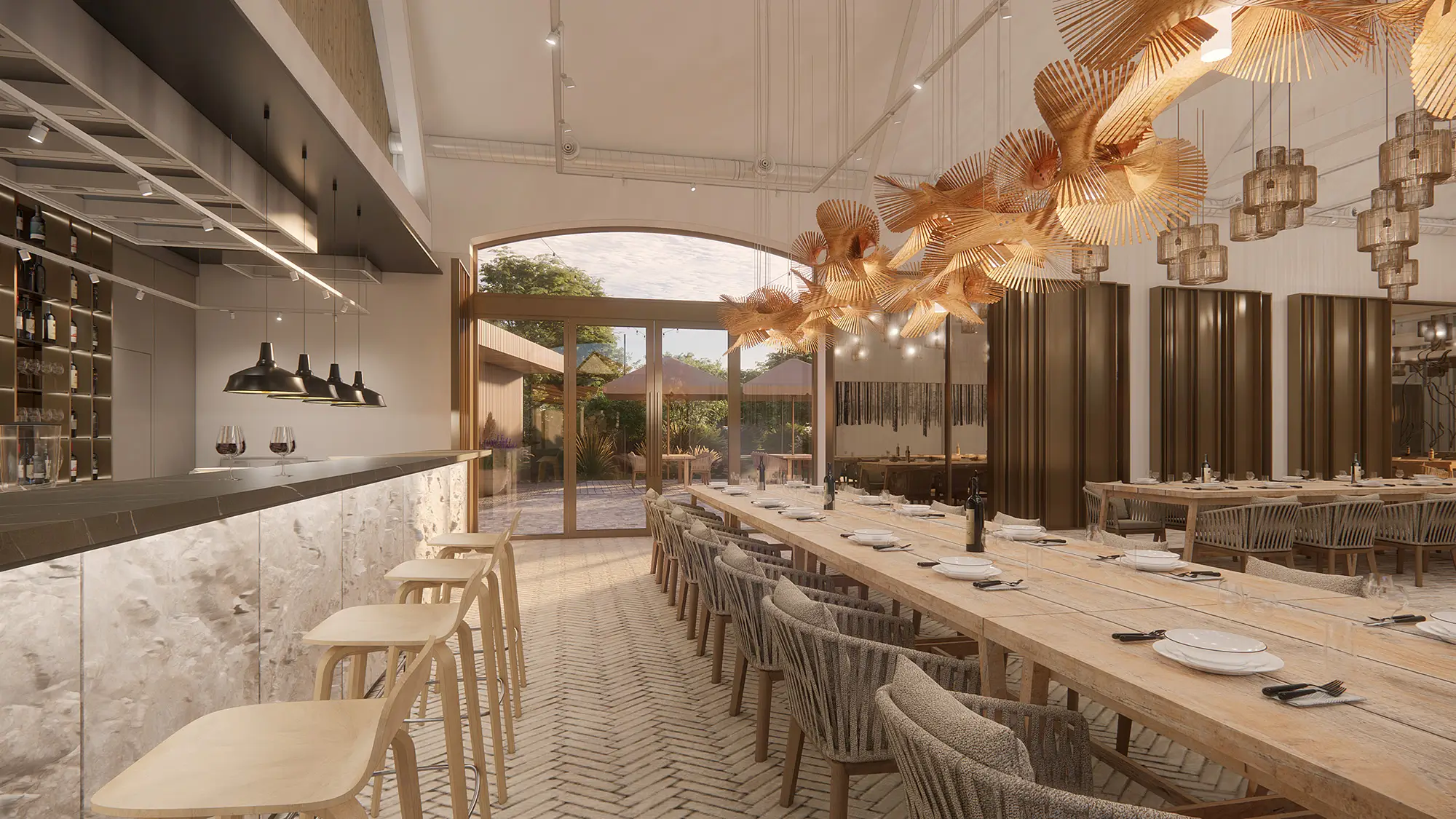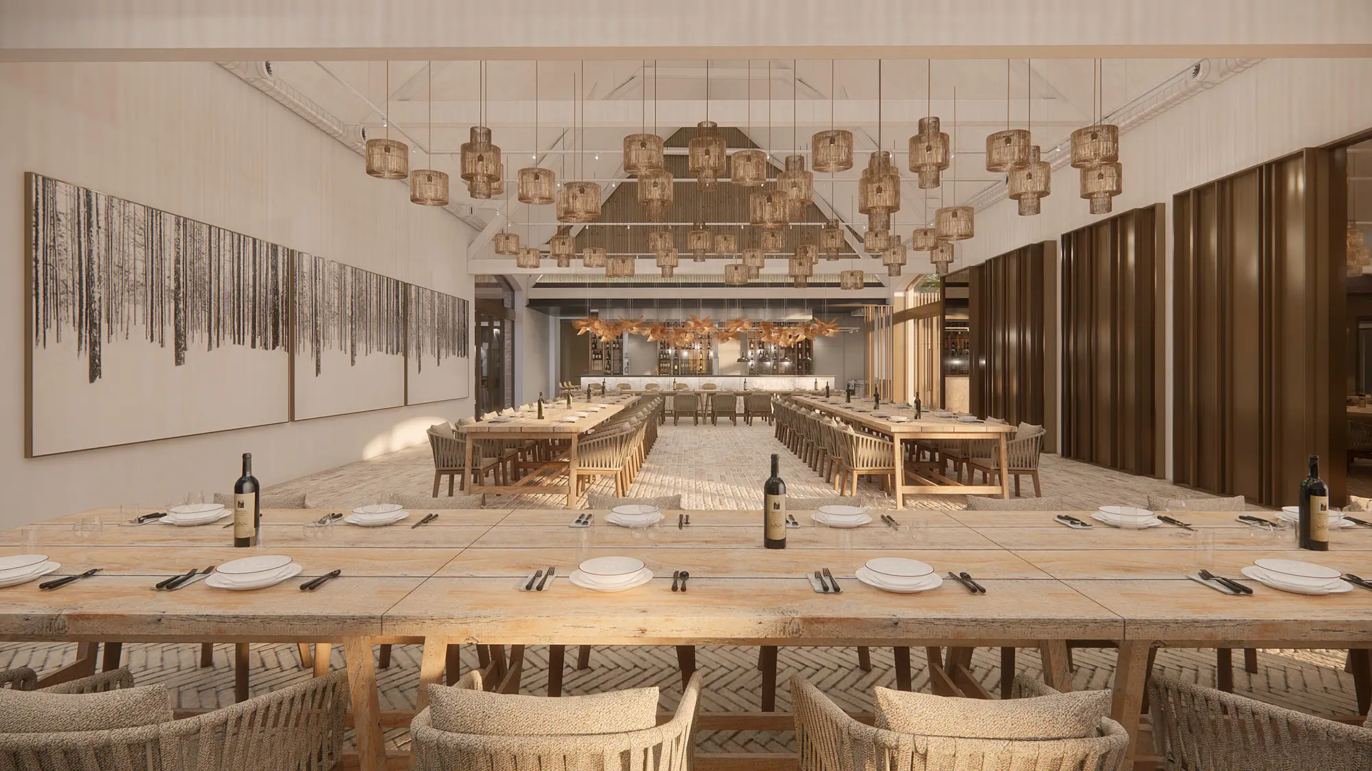 Původní klenby a trámy v kombinaci s designovým osvětlením
