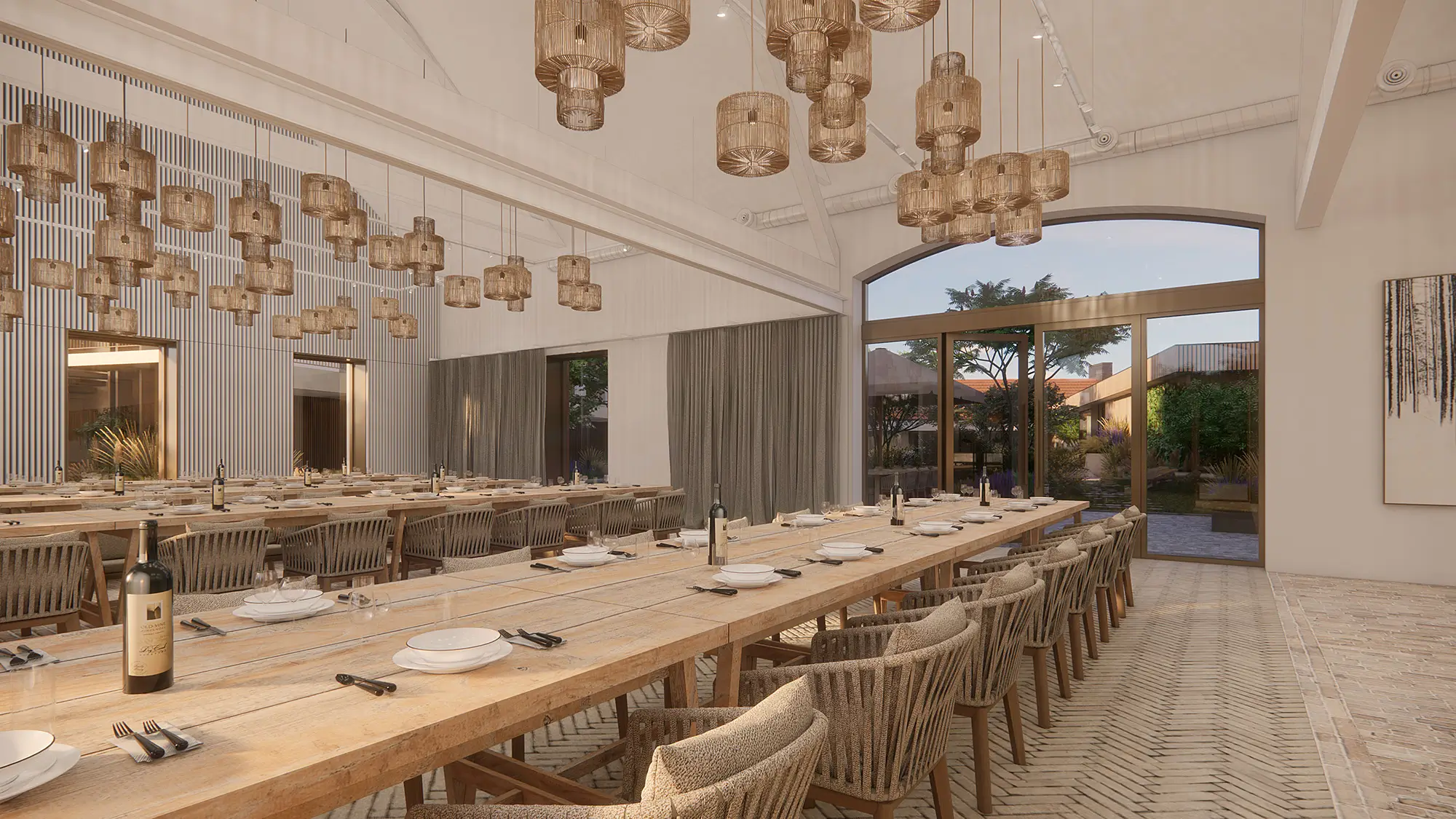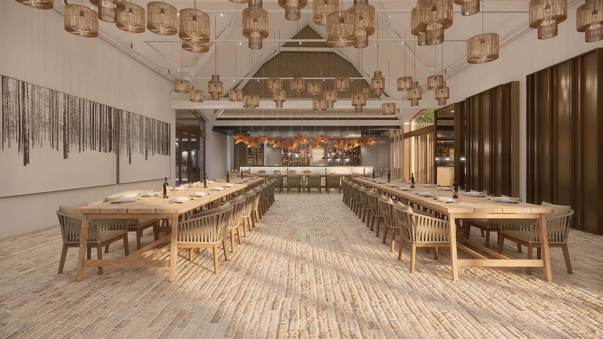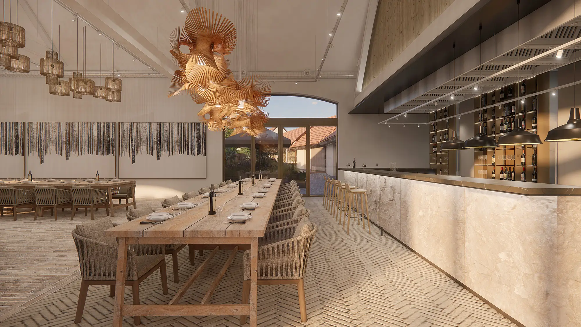 Původní klenby a trámy v kombinaci s designovým osvětlením